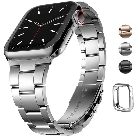 Correa de acero inoxidable para iWatch, pulsera de lujo de 3 eslabones, 38, 40, 41, 42, 44 y 45mm